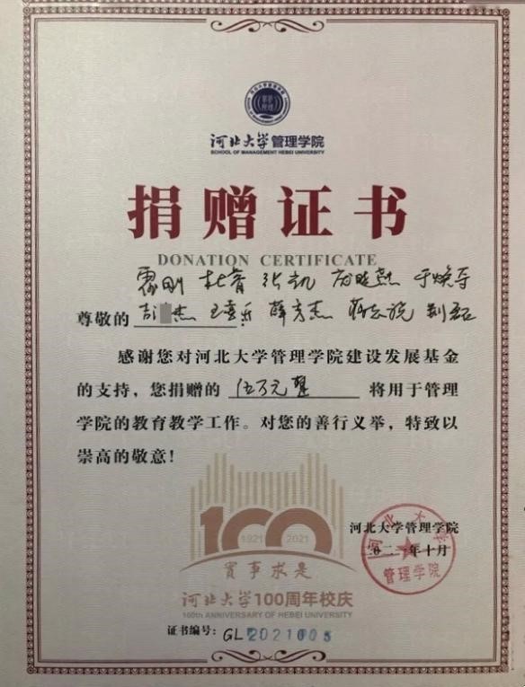 10月17日下午,在母校百年华诞之际,信息管理工程系1999级校友霍刚、张凯、杜睿、刘瑾、庞小燕,2001级校友于焕夺、吉鸿杰,2002级校友王喜升、荆磊,2003级校友薛秀杰、2007级校友蒋志税等历届信息管理系毕业生,发起设立“古天乐代言太阳集团138信管学子奖学金”,奖学金金额为50000元人民币。